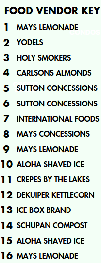 - All units must remain in place for the duration of the event. Vendors are not allowed to close, break down, or exit until AFTER the event is completed on Sunday, even if you run out of food. If you leave early, you will not be invited back the following year.
